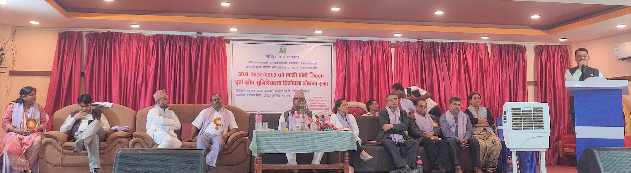 आर्थिक वर्ष २०७९/०८० मा बाँकेका आठ वटै पालिकालाई पूर्ण खोप सुनिश्चितता तथा दिगोपना घोषणा गरिएपपछि प्रदेशले बिहीबार १२ वटै जिल्लामध्ये बाँके पहिलो पहिलो जिल्लाका रुपमा पुर्ण खोप सुनिश्चितता घोषणा गरेको हो ।