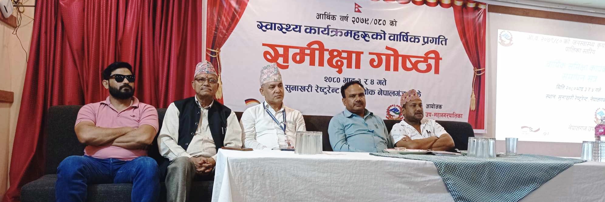 कार्यपालिका सदस्य बसन्त कनोजिया, स्वास्थ्य महाशाखाका प्रमुख रामबहादुर चन्द, स्वास्थ्य कार्यालयकी दुर्गा गौतम, मनिकापुर स्वास्थ्य चौकीका इन्चार्ज प्रकाश श्रेष्ठ, जीआइजेडका कार्यक्रम संयोजक सुभाष नेपाल लगायतले गोष्ठीमा प्रस्तुत तथ्यांकलाई हेरेर आगामी बर्षका योजनाहरु बनाएर अघि बढ्नुपर्ने बताउनुभयाे । समापन कार्यक्रमको संचालन जनस्वास्थ्य निरीक्षक राजन शाहीले गर्नुभएकाे थियाे ।