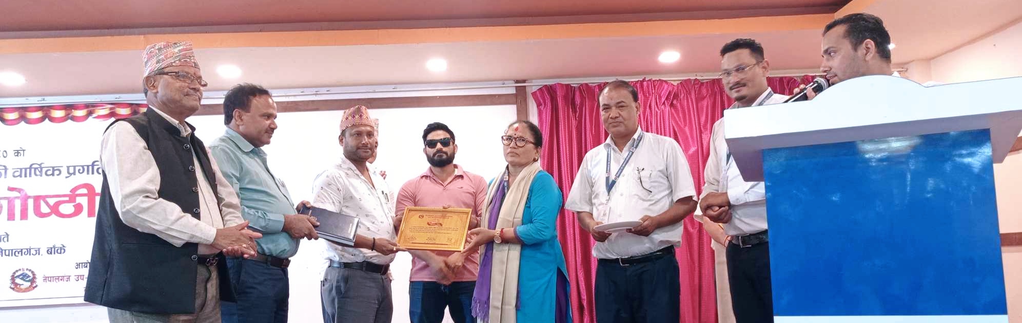 नेपालगमञ्जका नगर प्रमुख प्रशान्त विष्ट, उपप्रमुख कमरुद्दिन राई, निमित्त प्रमुख प्रशासकीय अधिकृत गोर्खबहादुर थापा, स्वास्थ्य महाशाखा प्रमुख रामबहादुर चन्दले आर्थिक वर्ष २०७९/८० को वार्षिक प्रगति समीक्षामा प्रथम भएको परसपुर स्वास्थ्य चौकीकी इन्चार्ज दिपा साउदलाई पुरस्कृत गर्नुभयाे ।