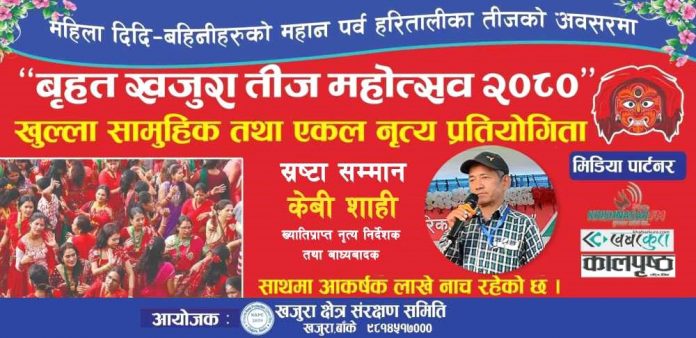 खजुरा । खजुरा क्षेत्र संरक्षण समितिको १८ औं श्रृङ्खलाका रुपमा आयोजना गरिएको १८ औं बृहत खजुरा तीज महोत्सव २०८० को तयारी अन्तिम चरणमा पुगेको छ ।