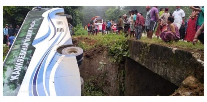 पूर्व-पश्चिम राजमार्गको लमही नगरपालिका-९ शिवखोलामा कर्णाली प्रदेश ०२-००१ ख०३६२ नम्बरको बस आज बिहान ६ बजेतिर दुर्घटनामा परेको हो ।