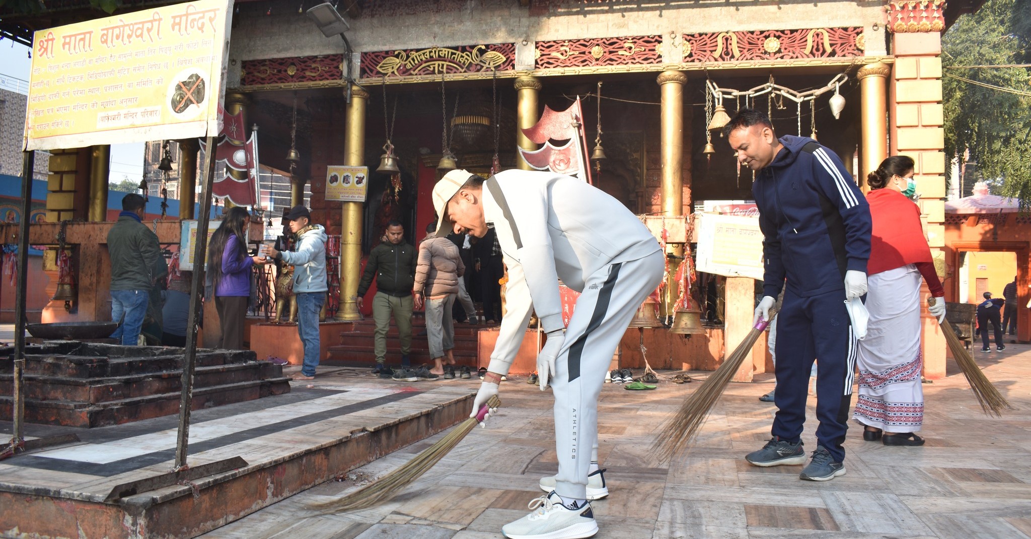 नेपालगञ्ज । पश्चिम नेपालको प्रसिद्ध नेपालगञ्जस्थित बागेश्वरी मन्दिरमा सरसफाई गर्दै डस्टविन हस्तान्तरण गरिएको छ ।