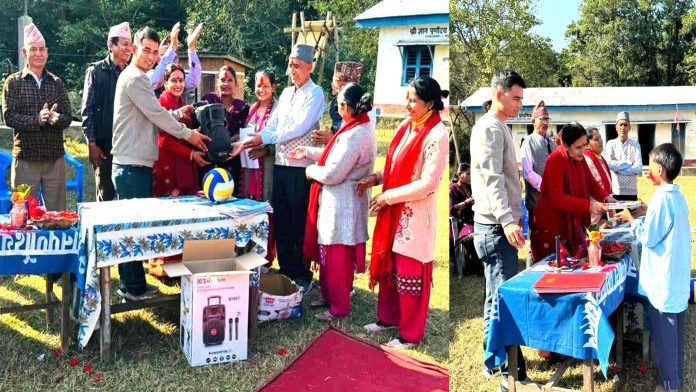 मंसिर २९ गते विवाह बन्धनमा बाँधिनुभएका स्थानीय माधव रावत र कोमल खड्काले मंगलवार २० हजार बढी मूल्य बराबरको शैक्षिक सामाग्री विद्यार्थीलाई सहयोग गरेको विद्यालयका प्रधानाध्यापक भरत खड्काले जानकारी दिनुभयो ।