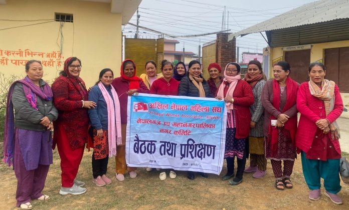 नेपालगन्ज । राजनीतिमा महिलाको क्षमता अभिबृद्धि गर्ने उदेश्यले अखिल नेपाल महिला संघ नगर कमिटीको आयोजनामा नेपालगञ्ज उपमहानगरपालिका वडा नं-१ धम्बोझीमा बैठक तथा प्रशिक्षण कार्यक्रम सम्पन्न भएकाे छ ।