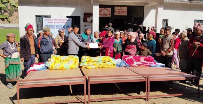 निमित्त वडा अध्यक्ष विमला रोका र निवर्तमान गाउँपालिका अध्यक्ष नरबहादुर पुनको उपस्थितीमा गाउँपालिका र वडाले तयार गरेको लाभग्राहीको सुचीका आधारमा राहत सामग्री वितरण गरिएको संस्थाका परियोजना संयोजक रामराज कठायतले जानकारी दिनुभयो ।
