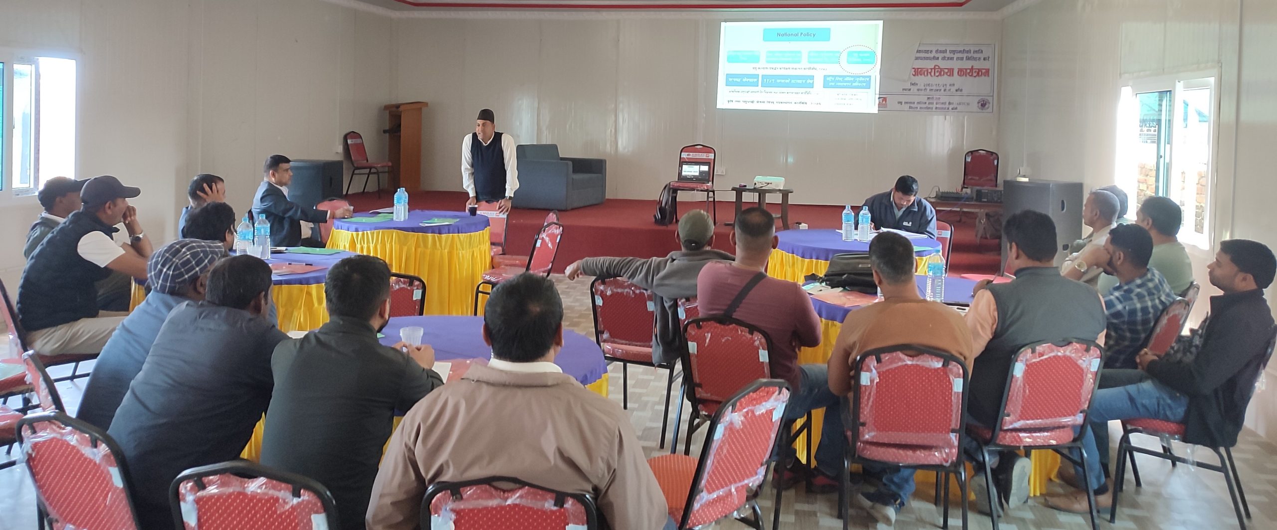 पशु स्वास्थ्य तालिम तथा परामर्श सेवा फिल्ड कार्यालय नेपालगञ्जले संचालन गरेको दिगोपना अस्वकल्याण लागि मानव आचारण रुपान्तरण तथा सुधार परियोजनामार्फत पशुपन्छीको क्षेत्रमा प्राकृतिक प्रकोप तथा महामारीजन्य रोगको समाधान गर्न, आपतकालिन योजना तथा कार्यबिधि तयारी र कार्यान्वयन, संघ, प्रदेश र स्थानीय नीति, कार्यबिधि, योजनाहरु तथा बिपद्का चरणहरुबारे जानकारी गराउने उद्देश्यले कार्यक्रम आयोजना गरिएको थियो ।