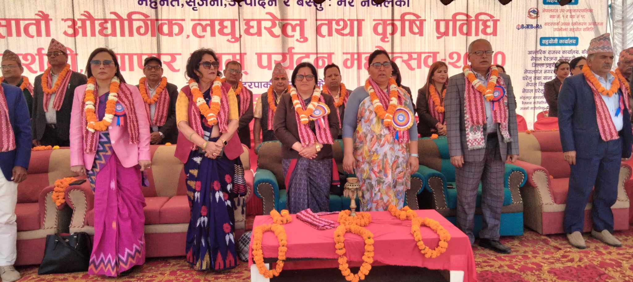 नेपालगञ्ज । सातौँ प्रादेशिक औद्योगिक लघु, घरेलु तथा कृषि, व्यापार एवम् पर्यटन महोत्सवको मङ्गलबार एक समारोहकाबीच औपचारिक उद्घाटन गरिएको छ । लुम्बिनी प्रदेशका पूर्व मन्त्री कृष्णा केसी ‘नमूना’ले महोत्सवको औपचारिक उद्धाटन गर्नु भएको हो ।