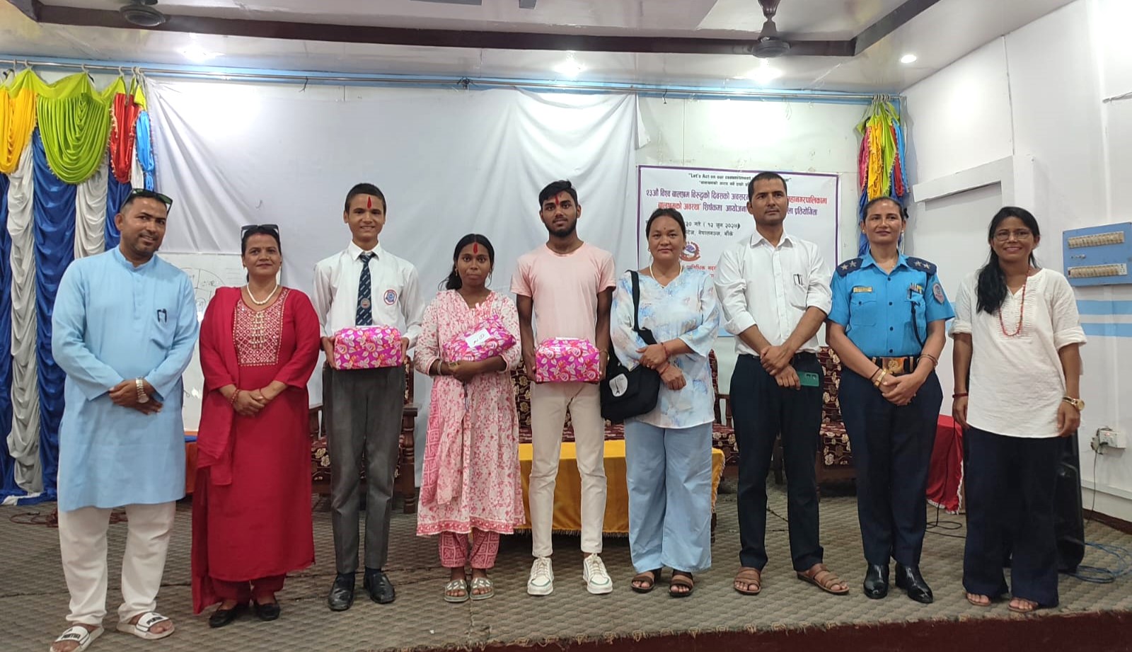 प्रतियोगिताका बिजेताहरुलाई निर्णायकत्रय बुढा, नेपाली, शाह, गैरसरकारी संस्था महासंघ बाँकेका सदस्य तारा प्रसाद खत्री, महिला बालबालिका तथा जेष्ठ नागरिक सेवा केन्द्रकी प्रमुख प्रहरी नायब निरीक्षक दिलसरा रानाले पुरस्कार बितरण गर्नुभएको थियो ।