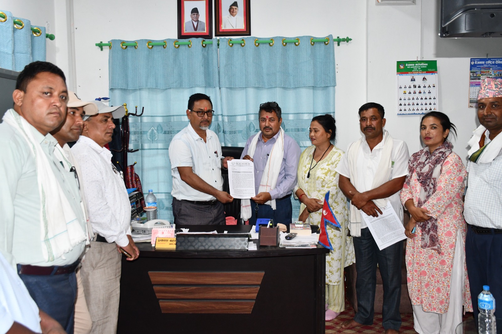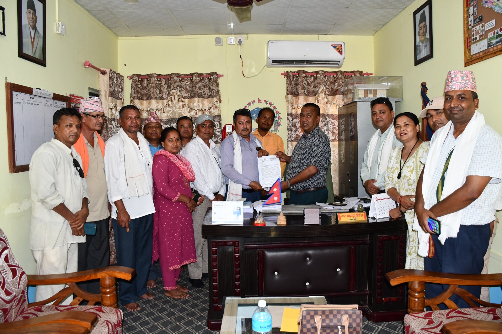 संघर्ष समितिका संयोजक कृष्ण विके रसाइली, सहसंयोजक अम्मर विश्वकर्मा, सचिव डिलबहादुर परिवार, पालिका संयोजकहरु र सचिवालय सदस्यहरुको टोलीले पालिकाका प्रमुखलाई २३ बुँदे योजनासहितको कार्यक्रम हस्तान्तरण गर्नुभएको छ ।