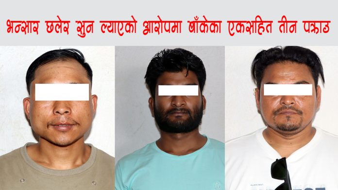 बाँके खजुरा गाउँपालिका वडा नं-८ का २४ वर्षीय मोहम्मद दिलसाद खाँ, नवलपरासी पूर्व गैंडाकोट नगरपालिका वडा नं-१३ घर भई काठमाडौं महानगरपालिका वडा नं-२६ बस्ने ४३ वर्षीय सन्तोष परियार, सोही वडामा बस्ने तनहुँ भानु नगरपालिका वडा नं-७ घर भएका २५ वर्षीय अन्जिल गुरूङ पक्राउ परेका हुन ।