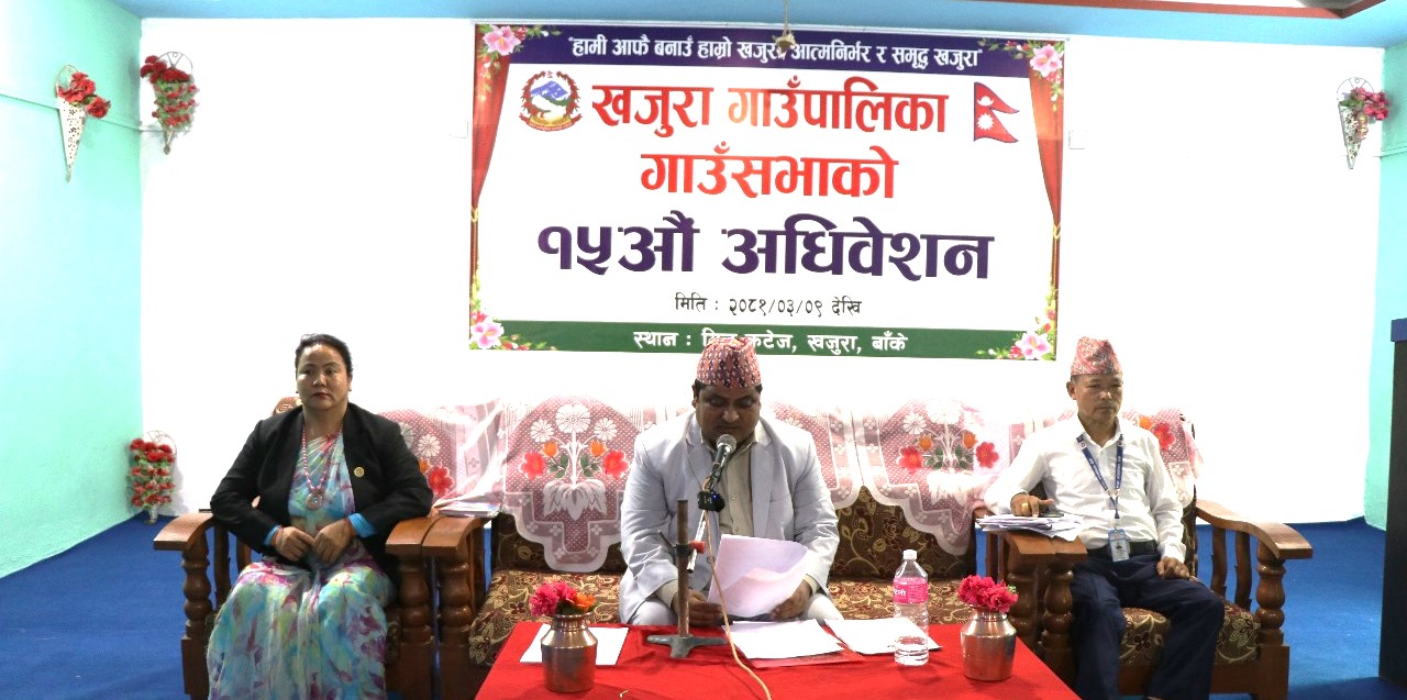 नेपालगञ्ज । बाँकेको खजुरा गाउँपालिका गाउँसभाको १५ औं अधिवेशनको पहिलो बैठकमै विवाद उत्पन्न भएको छ । गाउँपालिका अध्यक्ष डम्बर बहादुर विकले एकलौटी ढंगले नीति तथा कार्यक्रम पेस गरेको भन्दैं गाउँसभामा उपस्थिती सदस्यहरुले बिरोध गरेका छन् ।