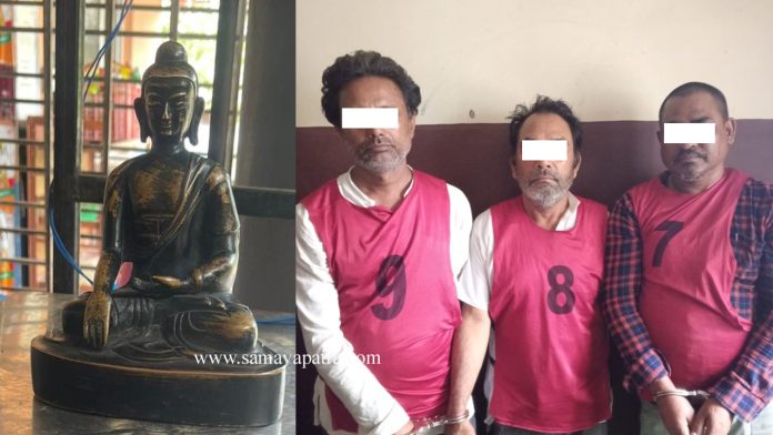 शंकास्पद रुपमा रहेका तीनै जनालाई सोधपुछ गरी खानतलासी गर्दा उनीहरुमध्ये कुवँरले पछाडी बोकेको झोलाभित्र गौतम बुद्धको मुर्ती फेला परेको थियो ।