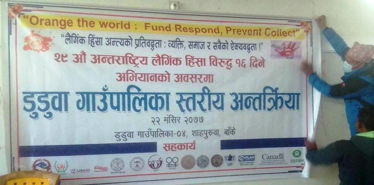 १६ दिने महिला हिंसा बिरुद्धको दिवसका अवसरमा बाँकेको डुडुवा गाउँपालिकामा सोमबार आयोजना गरिएको अन्तरक्रिया कार्यक्रममा बोल्दै वक्ताहरुले हिंसा न्युनिकरणका लागि महिला स्वंय सक्षम बन्ने कोशिस गरे सजिलो हुने बताएका हुन ।