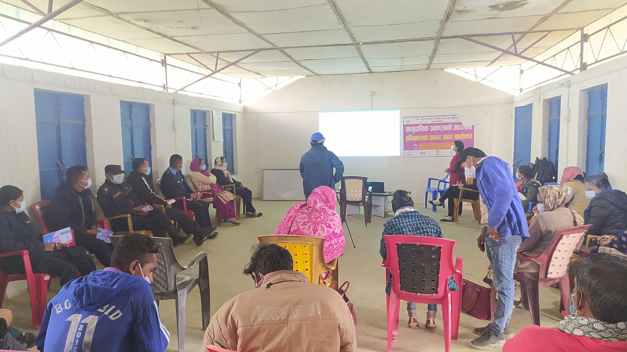 सो कार्यक्रममा डुडुवा कार्यपालिका सदस्य रिता परियार, न्यायीक समितिका सदस्य, वडा सदस्य, इलाका प्रहरी कार्यालय मिलन चोक, बनकट्टी र बेतहनीका प्रमुखहरु, मेलमिलाकर्ता, किशोरी समूह, शिक्षक र सहकारी संस्थाका व्यक्तिहरुको तथा अन्य सेवाग्राहीहरुको सहभागिता सामाजिक परिचालक शिव कुमार जैसवालले बताउनुभयो ।