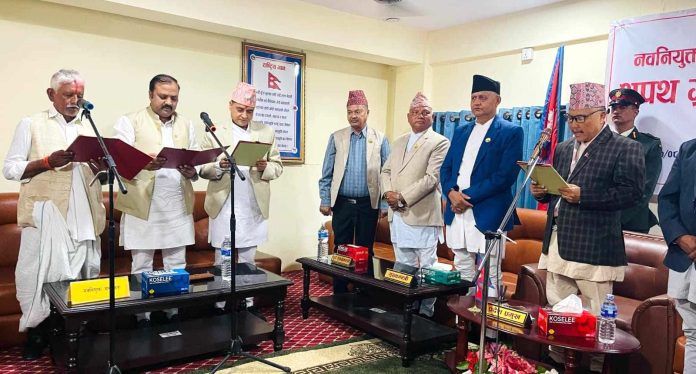 मुख्यमन्त्री चेतनारायण आचार्यको सिफारिसमा प्रदेश प्रमुख कृष्णबहादुर घर्तिमगरले बिहीवार बिहान उहाँहरूलाई मन्त्री पदमा नियुक्त गर्नुभएको हो । प्रदेश प्रमुखको कार्यालयमा आयोजित समारोहमा नवनियुक्त मन्त्रीहरूलाई पद तथा गोपनीयताको सपथग्रहण गराइएको हो ।