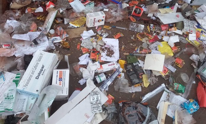 त्रिभुवनचोक सदरलाइनस्थित हरि ॐ मेडिकल हललाई सडकमा जथाभावी स्वास्थ्यजन्य फोहोर फोलेपछि ५ हजार रुपैयाँ जरिवाना गरिएको नगर प्रहरी प्रमुख प्रहरी निरीक्षक सूर्यबहादुर बोगटीले बताउनुभयो ।