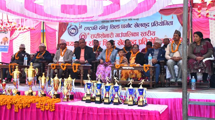 राप्ती सोनारी । बाँकेको राप्ती सोनारी गाउँपालिकामा १७ औं राष्ट्रपति रनिङ शिल्ड छनोट प्रतियोगिता तथा सातौं राप्ती सोनारी गाउँपालिका अध्यक्ष कप खेलकुद प्रतियोगिता सुरु भएको छ ।