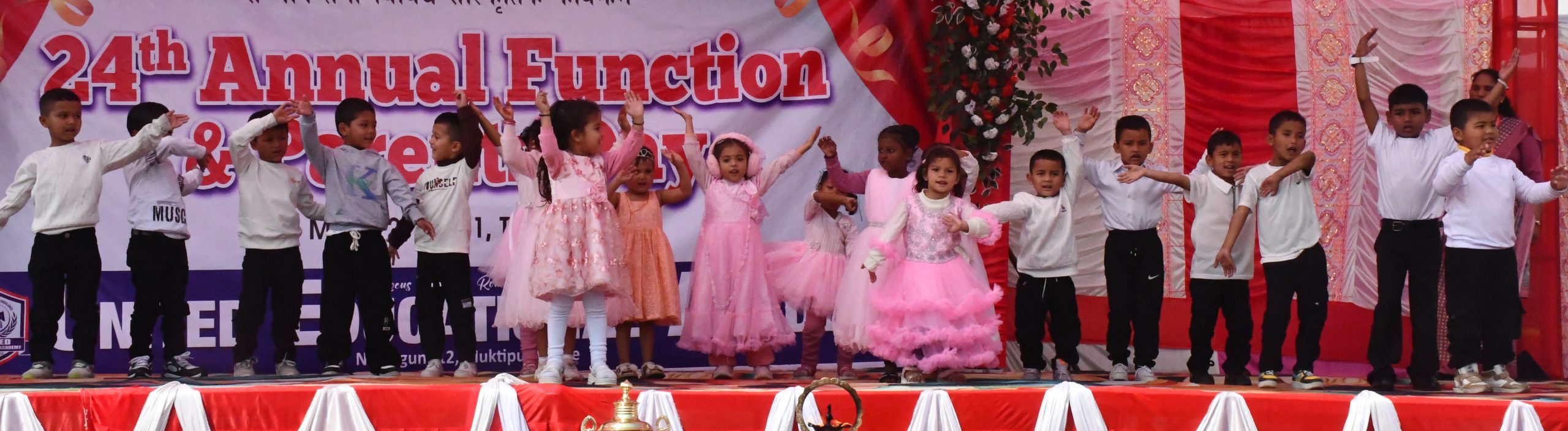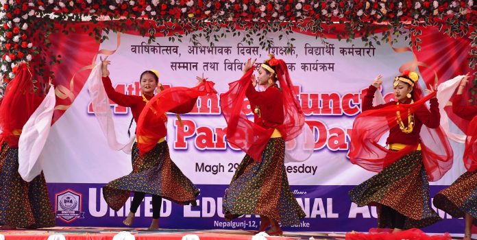 नेपालगन्ज । नेपालगन्जमा रहेको युनाइटेड एजुकेशनल एकेडमीले मंगलबार आफ्नो २४ औं वार्षिकोत्सव तथा अभिभावक दिवस मनाएको छ । विद्यालय प्रांगणमा एक समारोहको आयोजना गरी विधि गतिबिधि गर्दै वार्षिकोत्सव तथा अभिभावक दिवस मनाएको हो ।