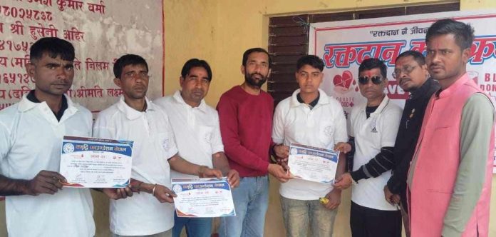 नेपालगन्ज । नेपालगन्जमा शनिबार भएको कार्यक्रममा ५६ जना स्वयंसेवी रक्तदान गरेका छन् । जानकी गाउँपालिका वार्ड नम्बर ३ को आर्थिक सहयोगमा समृद्धि फाउण्डेसन नेपाल बाँकेको आयोजनामा जानकी ३ नम्बर वडा कार्यालय परिसरमा फाउडेशनका अध्यक्ष महेश कुमार चौधरीको अध्यक्षता, जानकी ३ का वडाध्यक्ष राज कुमार वर्माको प्रमुख आतिथ्यमा भएको कार्यक्रममा ५६ जनाले रक्तदान गरेका हुन् ।