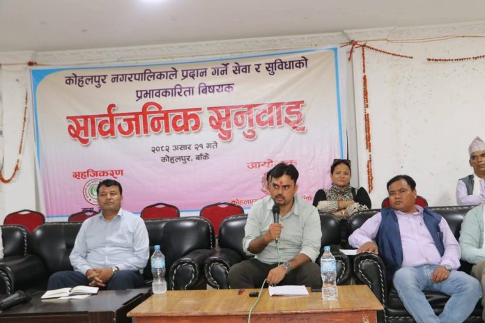 काेहलपुर । बाँकेकाे कोहलपुर नगरपालिकाको सार्वजनिक सुनुवाइ सम्पन्न भएको छ । बास नेपालको सहजीकरणमा यस आवको अन्तिम सार्वजनिक सुनुवाई सम्पन्न भएको हो ।