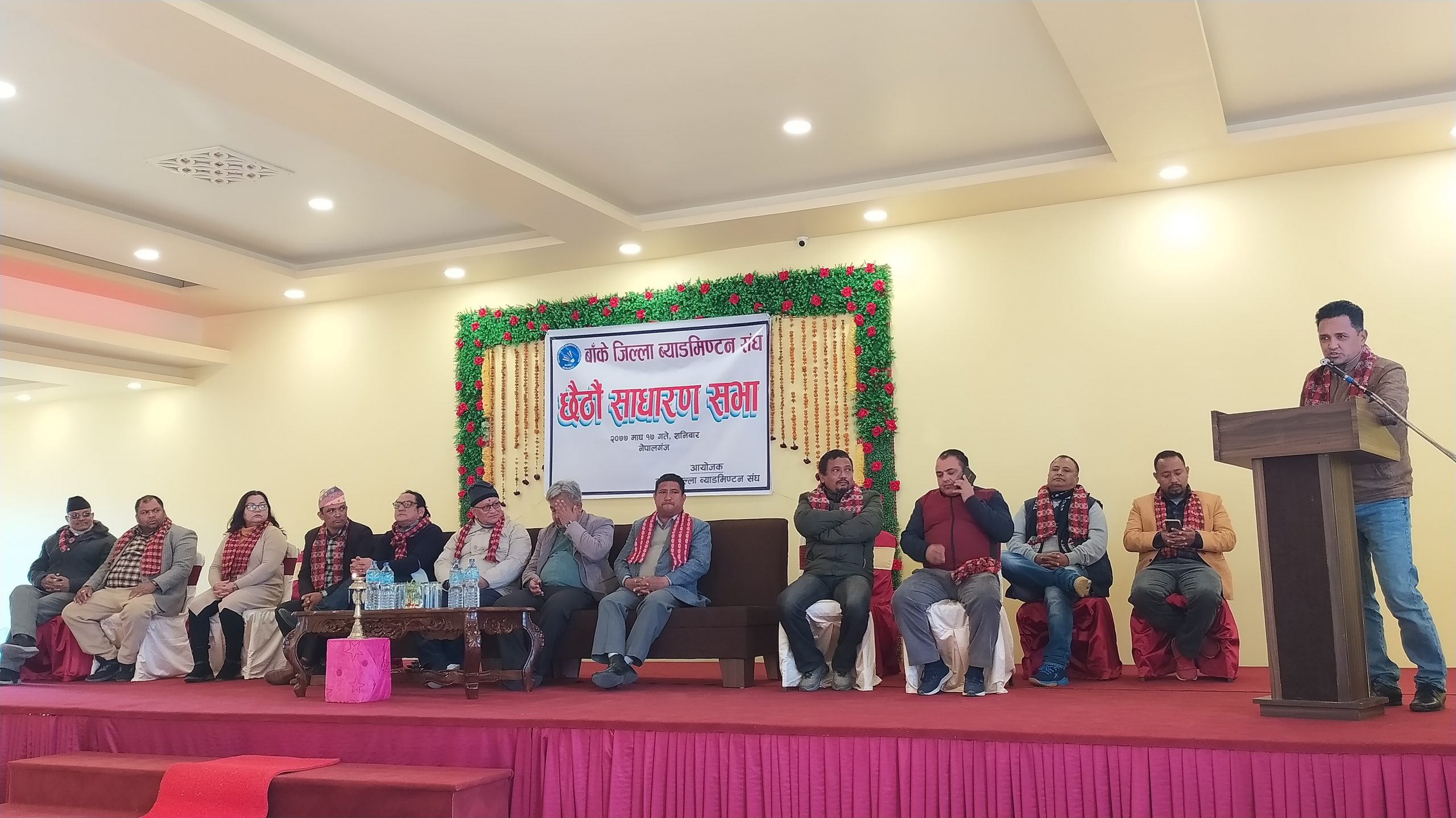 साधारणसभामा राष्ट्रिय खेलकुद परिषदका प्रमुख व्याटमिन्टन प्रशिक्षक सुदिप योन्जन, जिल्ला खेलकुद बिकास समिति प्रमुख सन्तोष श्रेष्ठ, सामुदायिक प्रहरी सेवा केन्द्रका निवर्तमान अध्यक्ष शशी स्वाँर, नेपालगंज उद्योग वाणिज्य कार्यसमिति सदस्य श्यामशुन्दर अधिकारी, होटेल व्यवसायी संघ लुम्बिनी प्रदेश अध्यक्ष भास्कर काफले, बाँके अध्यक्ष भीम कंडेल, पुर्व प्रशासकीय अधिकृत बसन्त कनौजिया लगायत व्याटमिन्टन खेलाडीहरुको उपस्थिती रहेको थियो ।