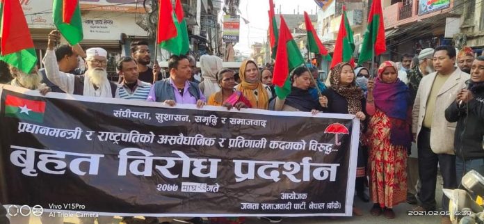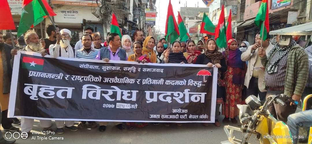 नेपालगन्ज । संसद बिघटनको बिरोधमा जनता समाजवादी पार्टी बाँकेले शुक्रबार पुन नेपालगन्जमा बिराेध प्रदर्शन गरेकाे छ ।