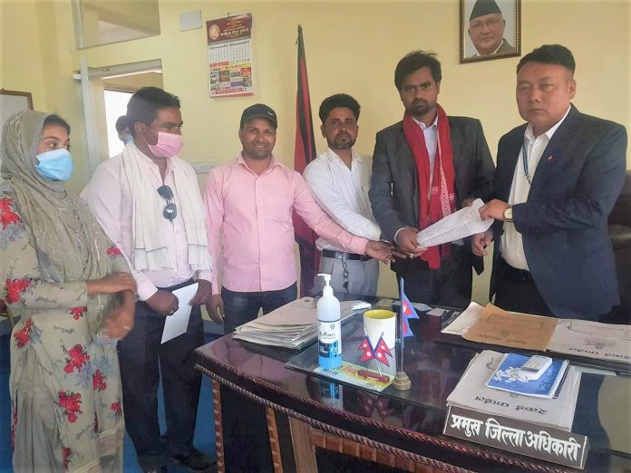 पार्टीका केन्द्रीय सदस्य इरफान अहमद शेषसहितको टोलीले आइतबार बाँकेका प्रमुख जिल्ला अधिकारी रामबहादुर कुरुम्वांगलाई ज्ञापनपत्र बुझाउँदै यस्तो माग गरेको हो ।