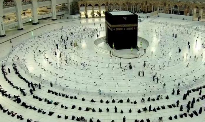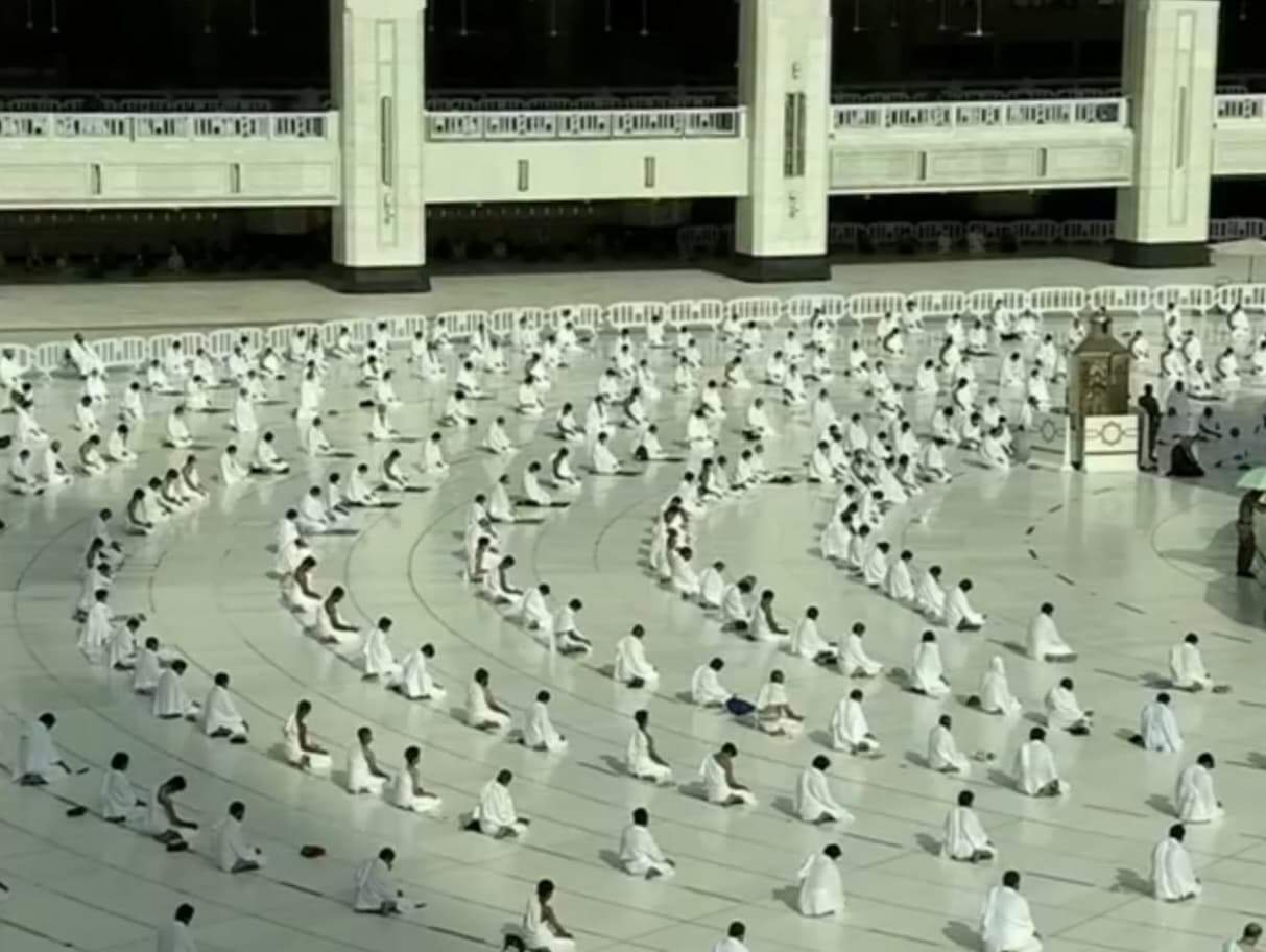 साउदी अरेबियाको पबित्र शहर मध्येको एक मक्कामा रहेको इस्लाम धर्मवालम्बीहरूको पबित्र धार्मिक स्थल मस्जिदे-ए हराम खांने कांबा मक्का शरीफमा शुक्रबार सोशल डिस्टेन्टका साथ असरको नमाज पढ्दै गरेको मनोरम दृश्य :
