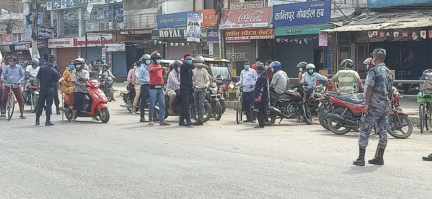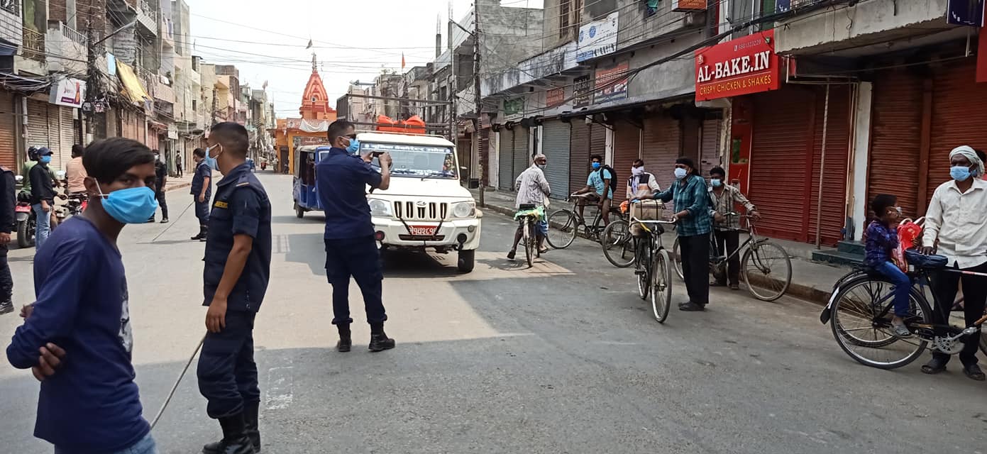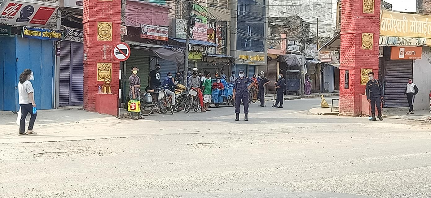 कडाई स्वरुप प्रहरीले नेपालगञ्जका बिभिन्न चोकमा आइतबार भेटिइएकाहरुलाई ४५ मिनेट जति होल्ड गरिएको छ । जिल्लाभरी नै लकडाउन भएपनि बाटोहरुमा मानिसहरुको अनावश्यक चहलपहल देखिन्छ ।