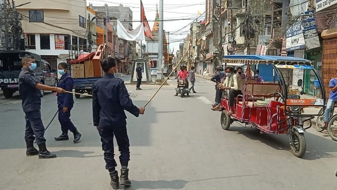 नेपालगञ्ज । नेपालगञ्जमा अनावश्यक रुपमा बजार डुल्नेहरुलाई प्रहरीले कडाई गर्न शुरु गरेको छ । लकडाउनका बेला बजारमा धेरै मानिसहरुको अनावश्यक आवत जावत बढेपछि प्रहरीले कडाई शुरु गरेको हो ।