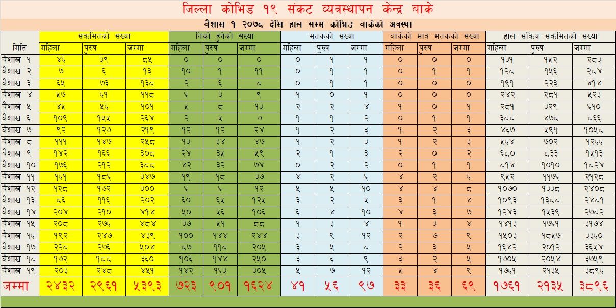 उहाँका अनुसार बैशाखको शुरुवातमा संक्रमितको संख्या बढ्दै गएको भएपनि १६ गते यता कोरोना निको हुनेको संख्या पनि बढेको छ । केन्द्रको तथ्याँक अनुसार बैशाख १६ मा २ सय ४४, १७ गते २ सय ५, १८ गते २ सय ५० र १९ गते सबैभन्दा बढी ३ सय ५ जनाले कोरोना परास्त गरेका छन ।