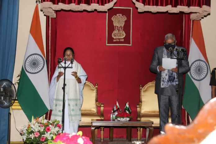 एजेन्सी, कोलकाता । भारतीय राज्य पश्चिम बंगालमा ममता बेनर्जी तेस्रो कार्यकालका लागि मुख्यमन्त्री बन्नुभएको छ । विधान सभाको चुनावमा आफ्नो दललाई दुई तिहाइ बहुमत दिलाउनुभएकी तृणमूल कंग्रेसकी प्रमुख बेनर्जीले बुधबार कोलकतास्थित राजभवनमा मुख्यमन्त्रीको सपथ लिनुभएको हो ।