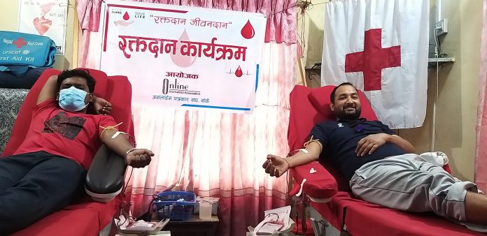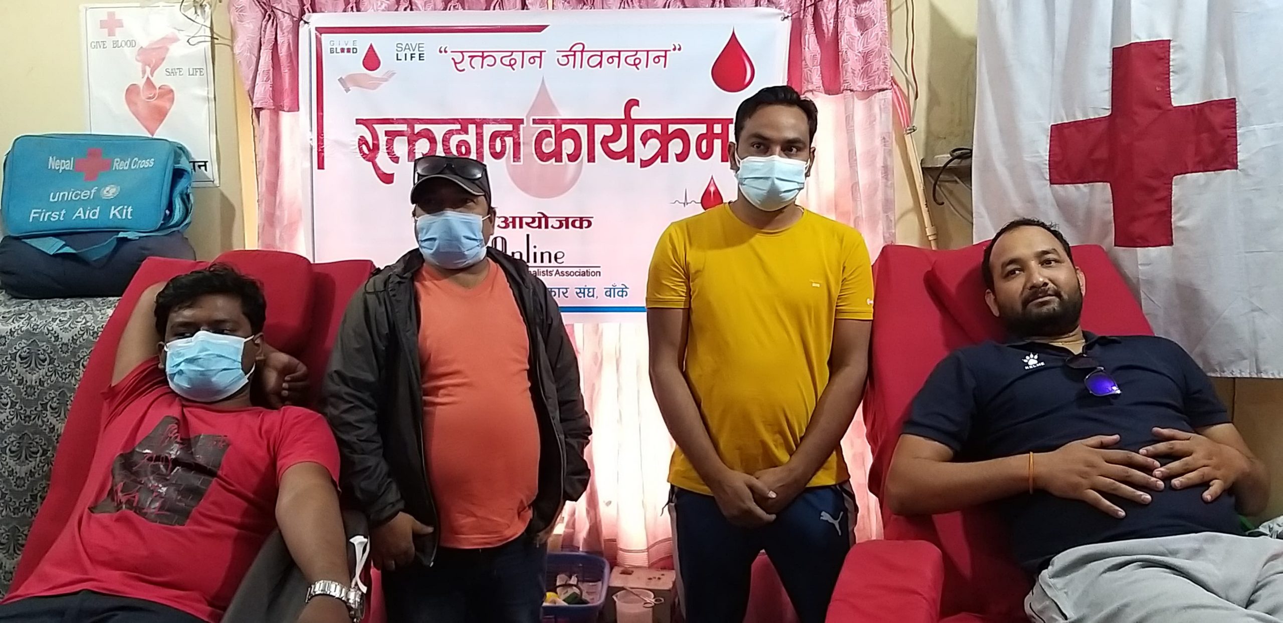 नेपालगञ्ज । अनलाइन पत्रकार संघ, बाँकेले साता ब्यापी रक्तदान कार्यक्रम सुरु गरेको छ । कोरोना संक्रमित विरामीलाई लक्षित गरि संघले साता ब्यापी रक्तदान कार्यक्रम सुरु गरेको हो ।