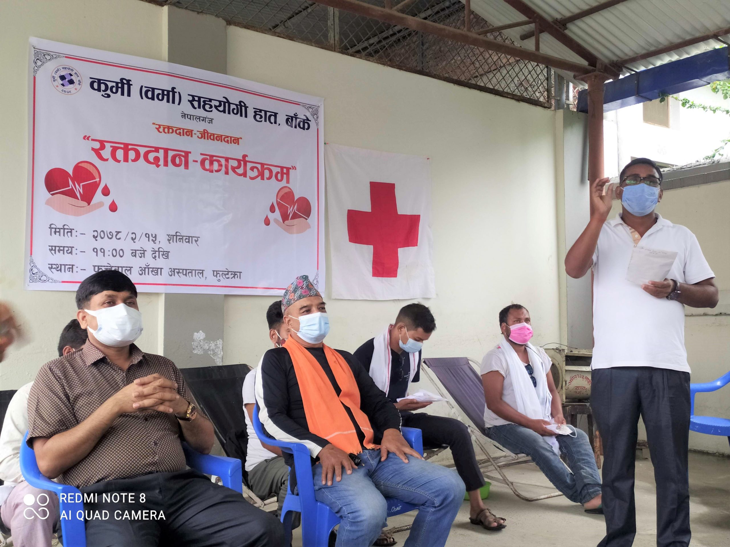 कार्यक्रमलाई नेपालगञ्जका मेयर डा.धवल शम्शेर राणाले शुभारम्भ गर्नुभएको थियो । उहाँले रक्तदाताहरुलाई गम्छा र चस्मा लगाउँदै शुभारम्भ गर्नुभएको थियो । उद्घाटनका क्रममा बोल्देै मेयर राणाले यस्तो महामारीका समयमा पनि रक्तदान गर्ने कार्य आफैमा सराहनीय भएको बताउनुभयो । उहाँले खासगरी बाँके जिल्लाका भुमिपुत्रका रुपमा रहेका कुर्मी (बर्मा) समुदायको यस जिल्लाको बिकास तथा सामाजिक कार्यमा ठुलो योगदान रहेको उल्लेख गर्नुभयो ।