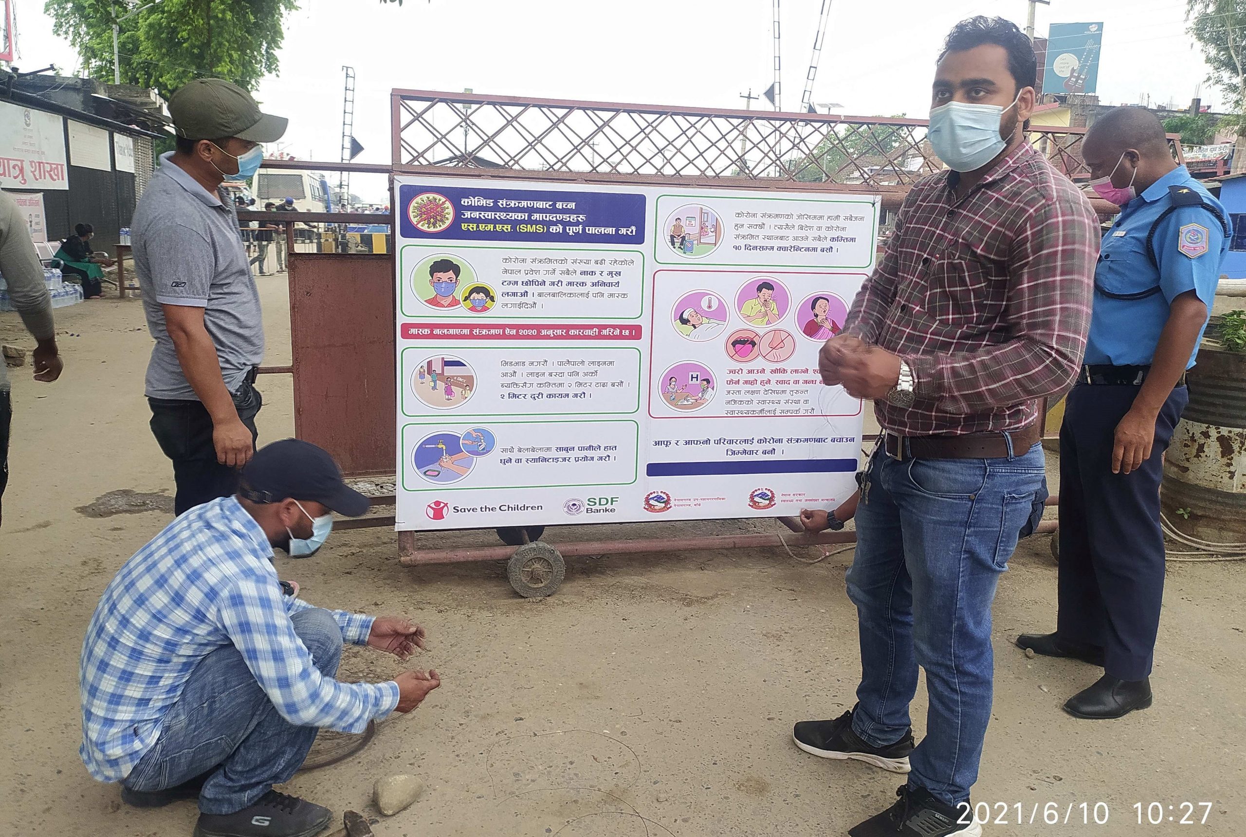 हामीले कोरोना भाइरस महामारीका समयमा नेपाल प्रवेश गर्ने व्यक्तिहरुलाई बच्नका लागि अपनाउनुपर्ने पर्ने सवाधानीका उपायहरुबारे जानकारी होस भनेर जमुनाहामा बोर्ड राखिएको छ, मंचका कार्यक्रम संयोजक राम संयोजक श्रेष्ठले भन्नुभयो, यसले नेपाल प्रवेश गर्ने व्यक्तिहरुलाई भाइरस बिरुद्ध लडन सहयोग पुग्ने आशा राखेका छौं ।