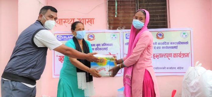 ठाकुरबाबा । बर्दियाको बारबर्दिया र ठाकुरबाबा नगरपालिकामा कोरोना भाइरसका कारण सदस्य गुमाएका परिवारलाई खाद्यन्न सहयोग प्रदान गरिएको छ । कोभिड १९ को कहरका कारण यी दुबै पालिकामा सदस्य गुमाएका गुमाएका परिवारलाई १ लाख ३४ हजार ९ सय ७९ रुपैया बराबरको खाद्यन्न सेट बितरण गरिएको हो ।