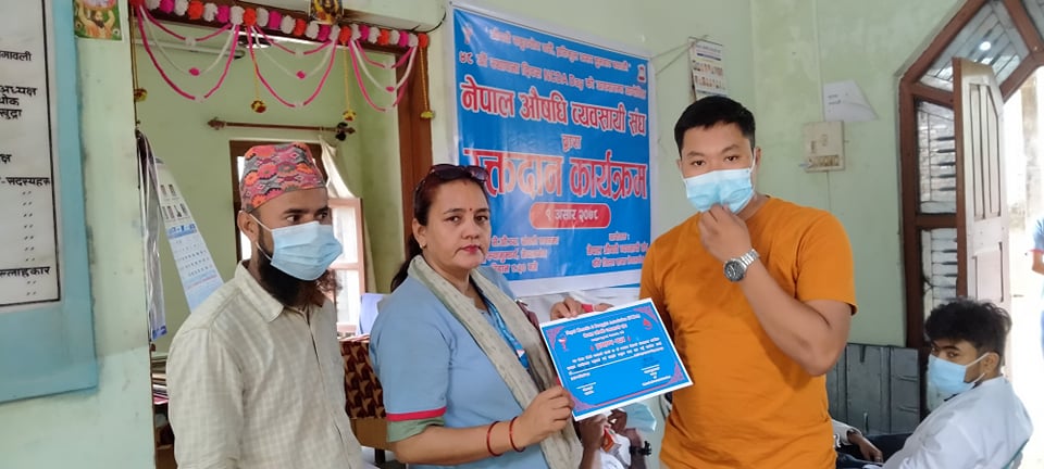 नेपालगञ्ज । नेपाल औषधी व्यवसायी संघ बाँकेले आफ्नो ४८ औं स्थापना दिवसको उपलक्ष्यमा रक्तदान कार्यक्रम गरेको छ ।