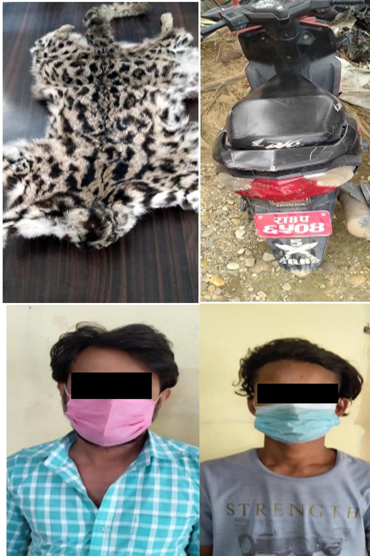 पुर्वबाट पश्चिमतर्फ आउदै गरेको रा ४ प ६५०४ नम्बरको स्कुटी रोकी चेकजाँच गर्ने क्रममा उक्त स्कुटीको डिक्की भित्र कालो झोलामा रहेको सेतो खैरो रंगको चरीबाघ चितुवाको जस्तो देखिने छाला फिट ३ ईन्च लामो फेला परेको हो ।