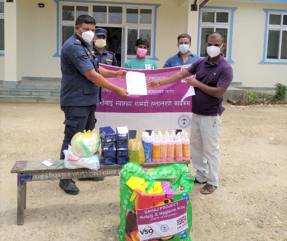 हिरमिनियामा डुडुवा गाउँपालिका वडा नं ६ का वडा अध्यक्ष मोहनराम मिश्राले उक्त स्वास्थ्य सामाग्री चौकीका प्रमुखलाई हस्तान्तरण गर्नुभएको थियो । संस्थाका कार्यक्रम अधिकृत दिनेश चौधरीको नेतृत्वमा ४ जिल्लामा स्वास्थ्य सामाग्री बितरण गरिएको जनाइएको छ ।