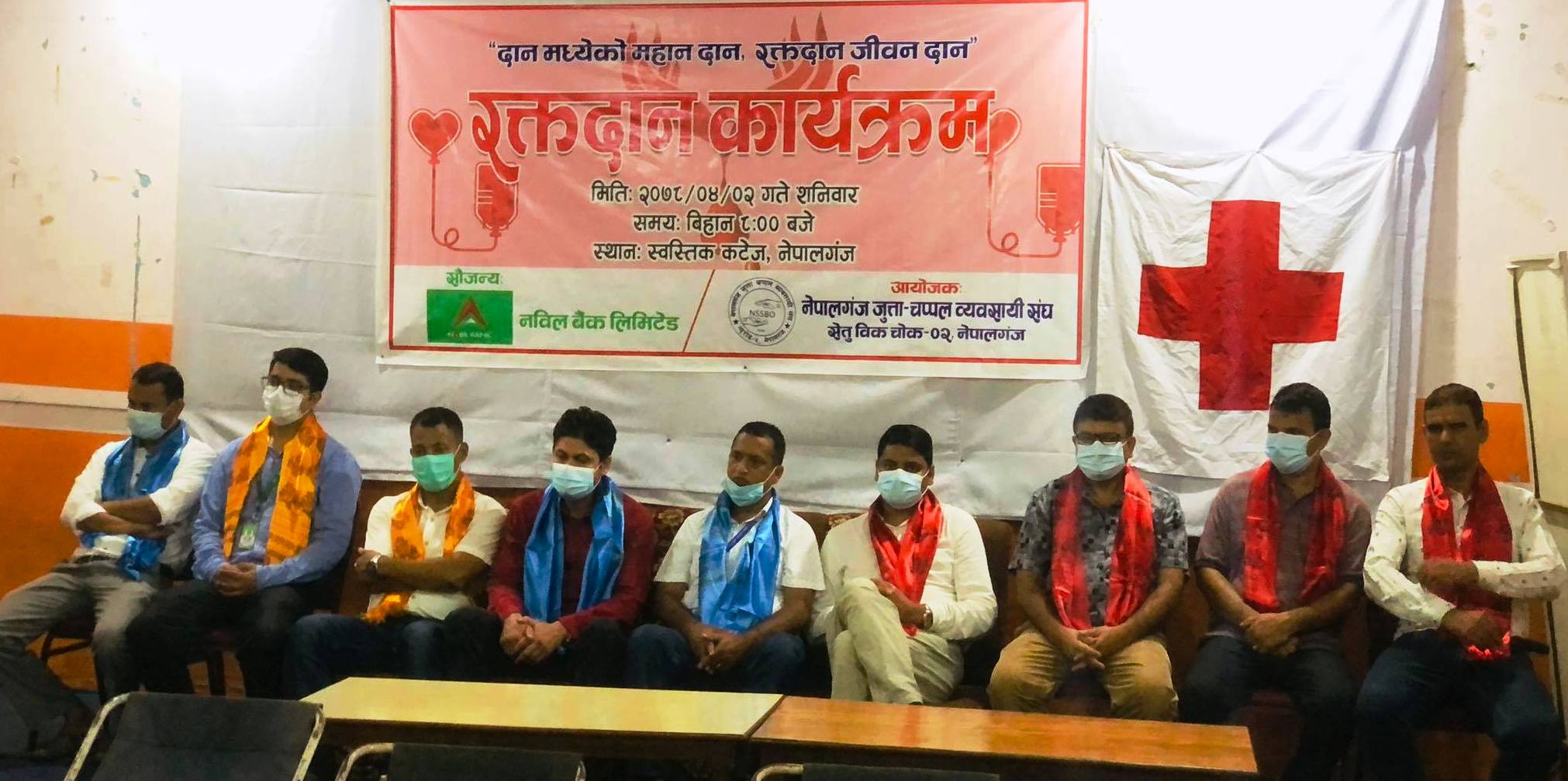नेपालगन्ज । “दान मध्येको महादान, रक्तदान जीवनदान” भन्ने मूल नाराका साथ नेपालगन्ज जुता चप्पल व्यवसायी संघद्वारा गरिएको रक्तदान कार्यक्रममा महिला पुरुष गरी ६७ जनाले रक्तदान गरेका छन् ।