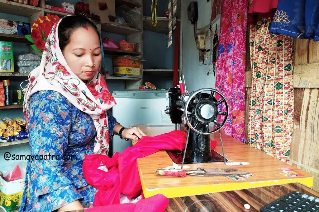 तालिममा सहभागि भएपछि सिलाई कटाईका लागि चाहिने आवश्यक सामानको जोहो कसरी गर्ने सोंचिरहेकै क्रममा उनलाई तालिम दिने संस्था सामाजिक बिकास मञ्च बाँकेले सिलाई र इन्टरलक मेसिन, आइरन र काउन्टर सहयोग प्रदान ग¥यो ।