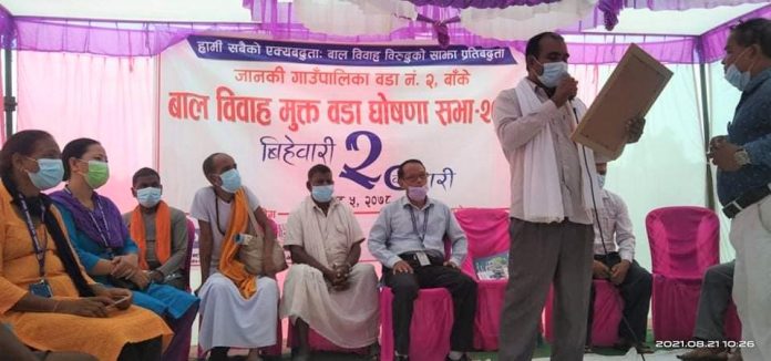 नेपालगञ्ज । बाँकेको जानकी गाउँपालिका वडा नं २ लाई बाल विवाहमुक्त वडा घोषणा गरिएको छ ।
