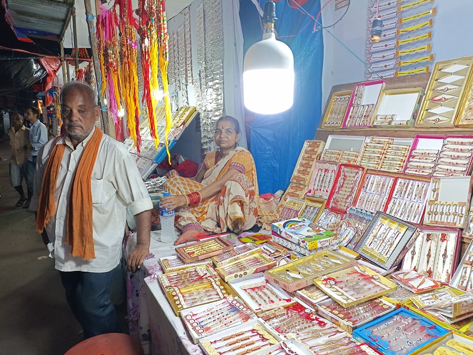 बजारहरुमा बेच्न राखिएका राखीको सडकको बीचमा वा सडकको किनारमा राखी सजेको हेर्न सकिन्छ । साथै मिष्ठान भण्डारहरुमा मिठाई, अंदरसा र फिनीको सुगन्धले शहर नै मनमोहक भएको छ । बजारमा बिहानदेखि नैं राखीको खरिद–बिक्रि शुरु हुने गरेको छ ।