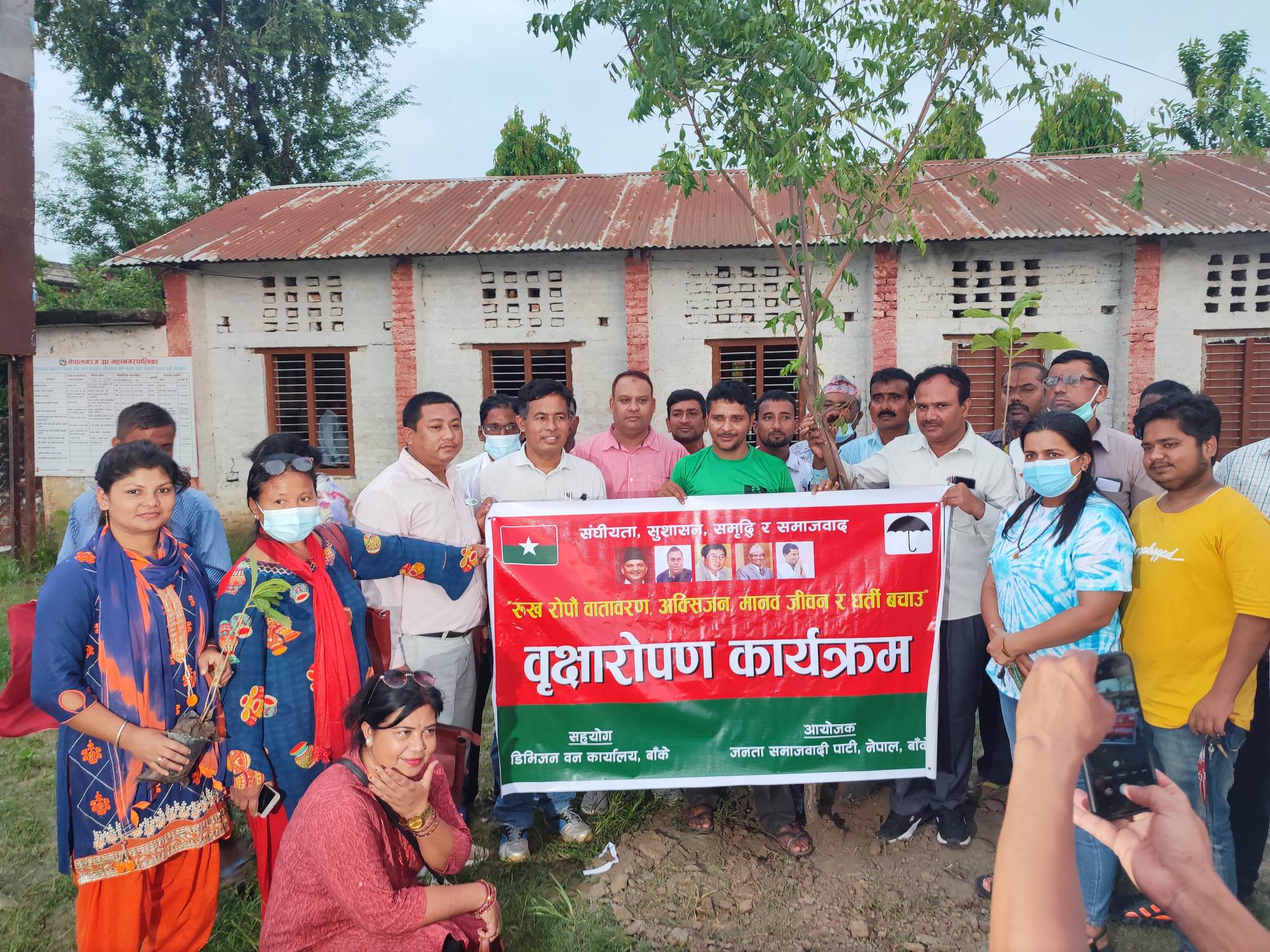 वातावरणलाई जोगाउन आआफ्नो तर्फबाट पहल थाल्नुपर्ने उद्देश्यका साथ नेपालगञ्ज उपमहानगरपालिका वडा नं १५ स्थित बिद्यालयको प्रवेशद्धारमा खाली रहेको जग्गामा मंगलबार साँझ बृक्षारोपण गरिएको हो ।