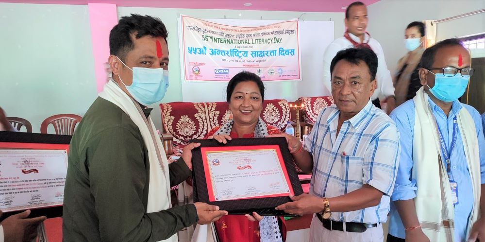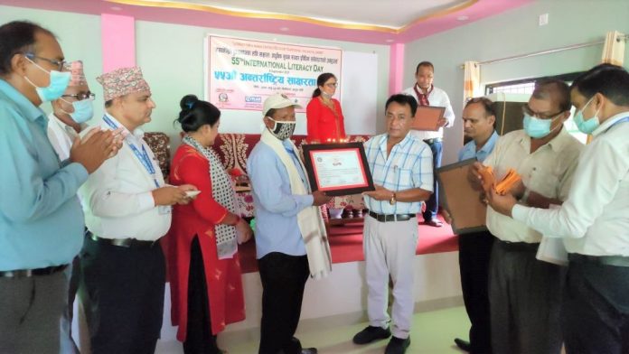 खजुरा । बाँकेको खजुरा गाउँपालिकाले गाउँपालिकाभित्रका ३१ जनालाई सम्मानित गरेको छ । ५५ औं अन्तर्राष्ट्रिय साक्षरता दिवसको अवसरमा बुधबार एक कार्यक्रमको आयोजना गरी उत्कृष्ठ शिक्षकका रुपमा ३१ जनालाई प्रमाण पत्र दोसल्ला तथा नगद रुपैयाले सम्मानित गरेको हो ।