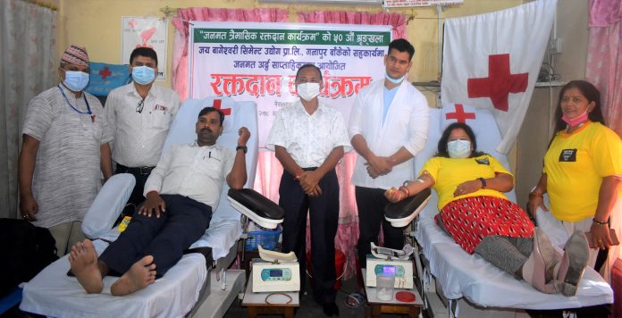 नेपालगन्ज । जनमत अर्द्ध साप्ताहिक पत्रिकाको आयोजना तजा जय बागेश्वरी सिमेन्ट उद्योग प्रालि, गनापुरको सहकार्यमा ५० औ पटक रक्तदान कार्यक्रम आज सम्पन्न भएको छ ।