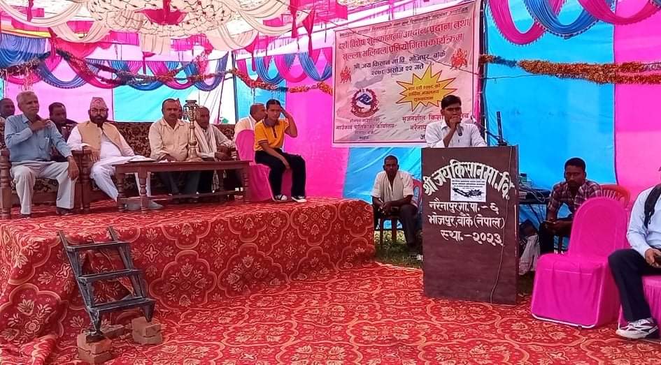 सो अवशरमा सन्चालन भएको खुल्ला भलिबल प्रतियोगिता शनिवार सम्पन्न हुदैछ । सो कार्यक्रमको प्रमुख अतिथि नरैनापुर गाउँपालिकाका अध्यक्ष इश्तियाक अहमद शाहले रेफ्रीलाई भलिबल हस्तान्तरण गरि कार्यक्रमको औपचारिक उद्घघाटन गर्नु भएको थियो ।