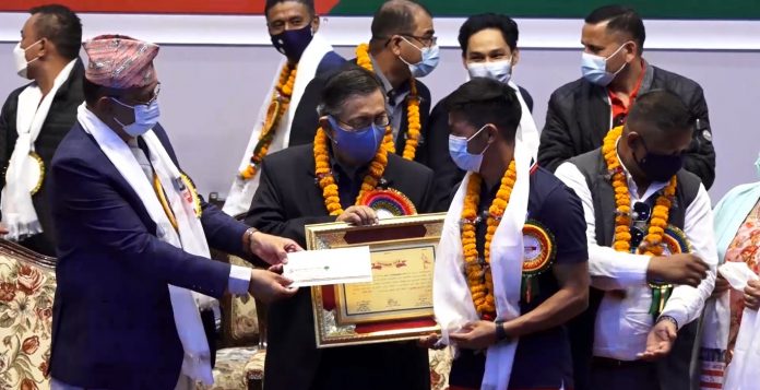 नेपाली टोलीका खेलाडी र प्रशिक्षकहरूलाई गृहमन्त्री बालकृष्ण खाँडले सम्मानपत्र र नगद प्रदान गरे । विभागले खेलाडीलाई १० हजार र अफिसियल्सलाई ५ हजार रुपैयाँ प्रदान गरेको हो ।